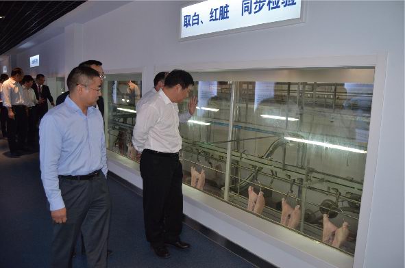 鮑市長(zhǎng)一行首先通過參觀廊參觀了公司生產(chǎn)現(xiàn)場(chǎng)。鄭寶振副董事長(zhǎng)對(duì)洛陽(yáng)市鮑市長(zhǎng)一行蒞臨洛陽(yáng)正大指導(dǎo)表示歡迎,并對(duì)洛陽(yáng)市政府一直以來對(duì)正大集團(tuán)在洛陽(yáng)項(xiàng)目的支持表示感謝。在公司三樓會(huì)議室,喬光斌總經(jīng)理匯報(bào)了洛陽(yáng)正大生產(chǎn)經(jīng)營(yíng)、項(xiàng)目建設(shè)規(guī)劃、食品安全管理、市場(chǎng)運(yùn)作模式、公司發(fā)展愿景等相關(guān)工作情況;鄭寶振副董事長(zhǎng)表示:洛陽(yáng)正大食品有限公司是集團(tuán)投資建設(shè)的***家生豬屠宰和豬肉深加工項(xiàng)目,集團(tuán)對(duì)該項(xiàng)目高度重視,利用正大集團(tuán)優(yōu)勢(shì),圍繞洛陽(yáng)正大100萬(wàn)頭生豬屠宰項(xiàng)目,在洛陽(yáng)地區(qū)打造從玉米種植、飼料加工、良種豬培育、商品豬養(yǎng)殖、屠宰分割、肉制品精深加工、冷鏈物流、連鎖專賣為一體的全產(chǎn)業(yè)鏈發(fā)展模式,確保產(chǎn)品的安全可追溯,下一步要高標(biāo)準(zhǔn)建設(shè)洛陽(yáng)正大深加工項(xiàng)目,并將在洛陽(yáng)周邊偃師、宜陽(yáng)、伊川、孟津等區(qū)域拓展安全豬源養(yǎng)殖基地,洛陽(yáng)正大食品有限公司向洛陽(yáng)市民提供安全、健康、營(yíng)養(yǎng)、美味的正大食品,希望市政府在洛陽(yáng)正大深加工項(xiàng)目建設(shè)和生豬養(yǎng)殖建設(shè)方面給予支持和幫助。